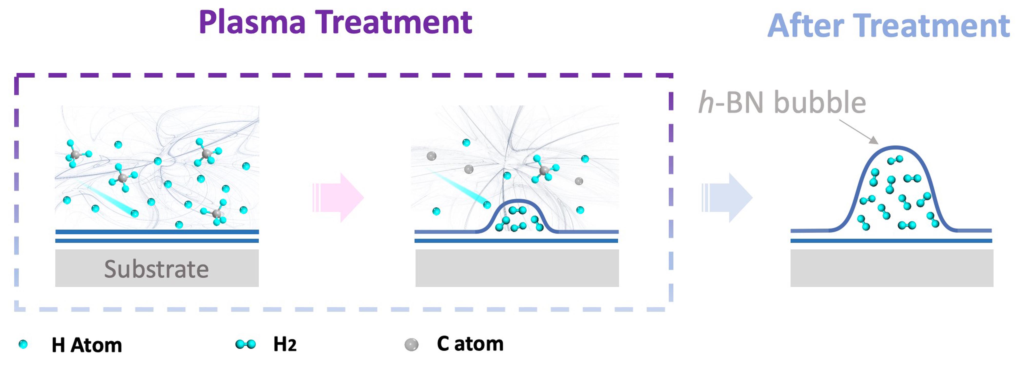 圖1. 通過等離子體技術(shù)從甲烷中提取氫氣到h-BN夾層中形成氣泡