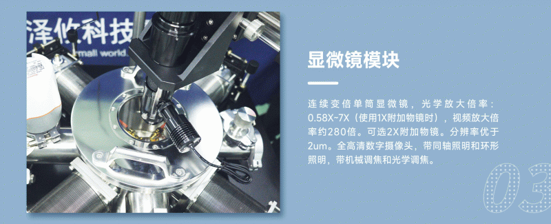 3. 顯微鏡模塊:連續變倍單筒顯微鏡,光學放大倍率:0.58X~7X(使用1X附加物鏡時),視頻放大倍率約280倍。可選2X附加物鏡。分辨率優于2um。全高清數字攝像頭,帶同軸照明和環形照明,帶機械調焦和光學調焦;