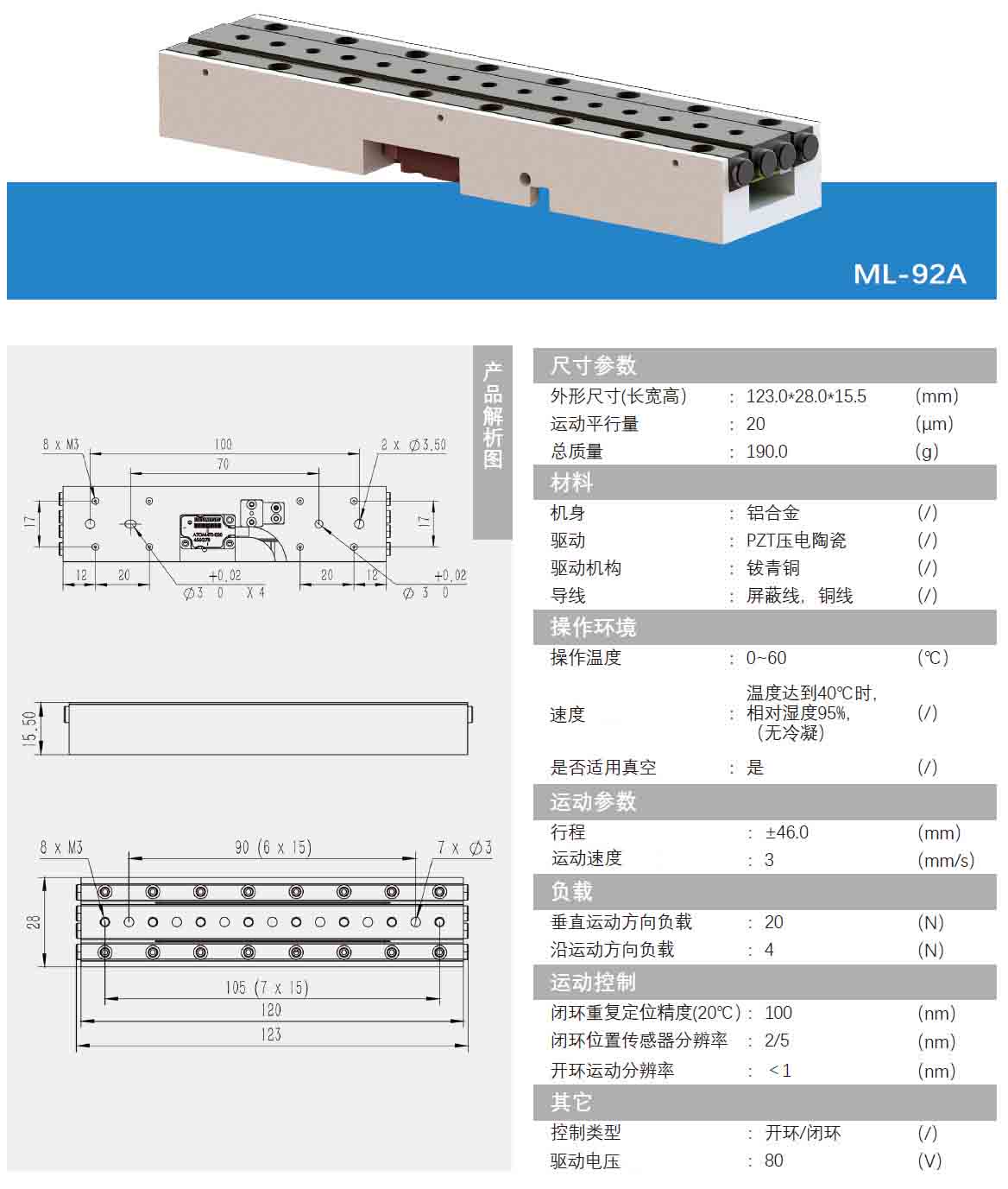 壓電直線納米位移臺ML-92A技術參數